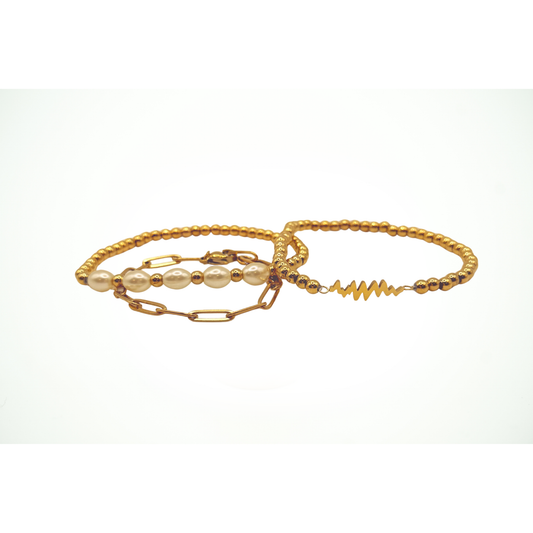 SAME WAVE Bracelet Stack with Glass Pearl Stretch + Paperclip