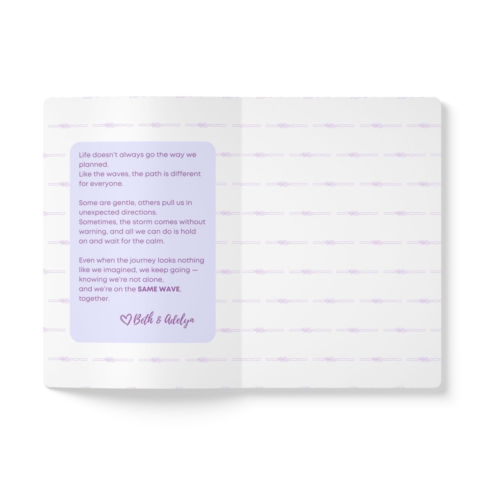 Featuring a quote on the back cover and a heartfelt poem written by Adelyn and me on the inside, this journal is more than paper and pages — it’s a reminder that healing, hope, and strength all come in waves.