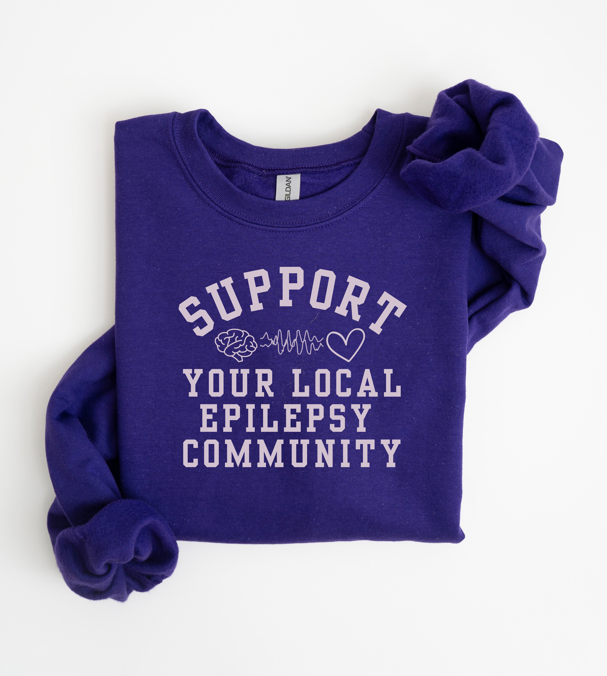 Wear your heart on your sleeve—literally. Our new Support Your Local Epilepsy Community sweatshirt combines the brain, our signature wave, and heart into one bold design, representing strength, advocacy, and love for the Epilepsy community.